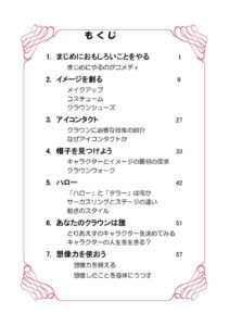 クラウンになるために必要なエッセンスや、数々のスキル、クラウンの学習方法等を、丁寧にレクチャーします。